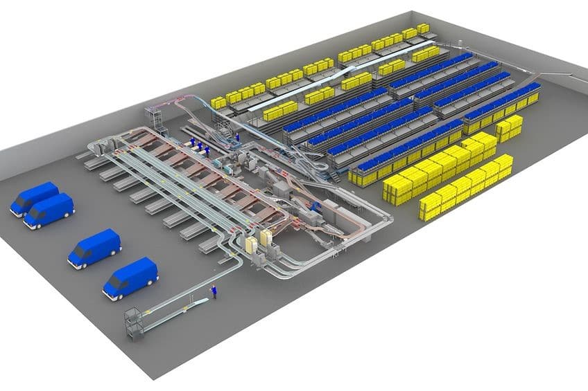 In the basement, in addition to the existing plant components, eight picking workstations with new flow, pallet, and overstock shelves will be installed. The facility will also be expanded with a second shipping line, including a shipping preparation line with document drop, lidding and inserting, as well as a strapping machine. The increased redundant system design aims to achieve higher reliability and throughput performance.