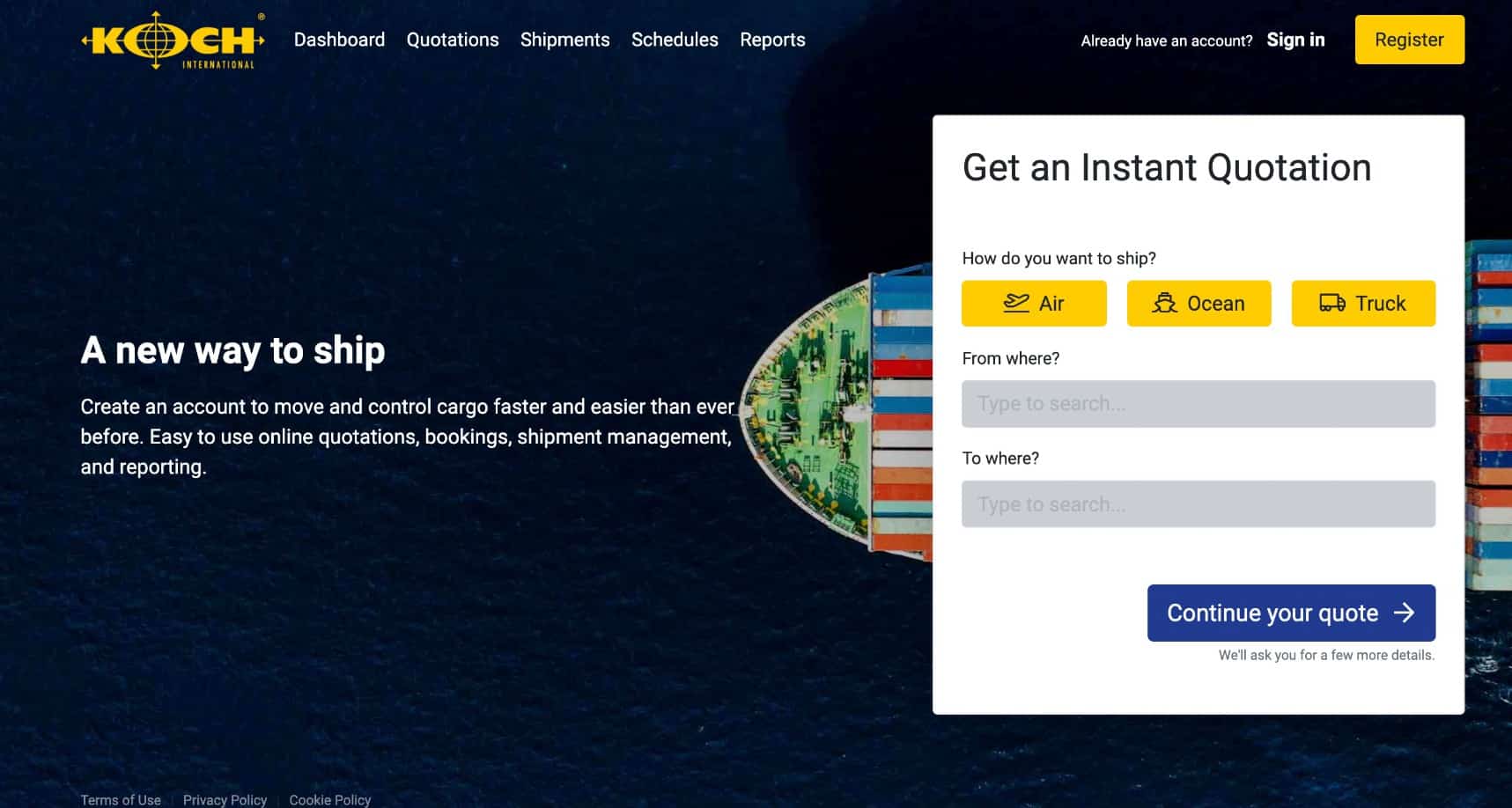 May 5, 2021 at 4:49 PMKoch International is launching a joint project with startups, the freight technology provider Qwyk and SimpliShip, to develop a comprehensive portal solution for the German logistics company. For Koch, this is a milestone in digitalization. The project is scheduled for completion by the end of the second quarter of 2021.