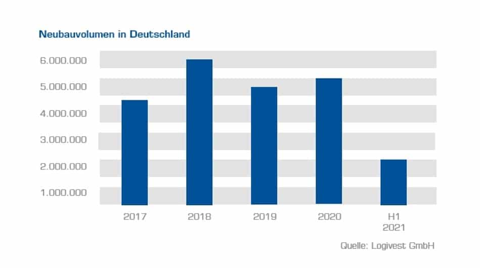(Munich) With a volume of around 2.5 million square meters, developments this year are even slightly above the half-year value of 2018, which set a new record with 2.4 million square meters of new construction volume in the first half of the year. “The logistics real estate market continues to show strong performance and is unaffected by external influences, so we are optimistic that we can maintain this level and at least match 2020 by the end of the year, if not exceed last year’s results,” says Kuno Neumeier, CEO of the Logivest Group. Based on the available data, he expects an annual volume of approximately 5.3 million square meters.