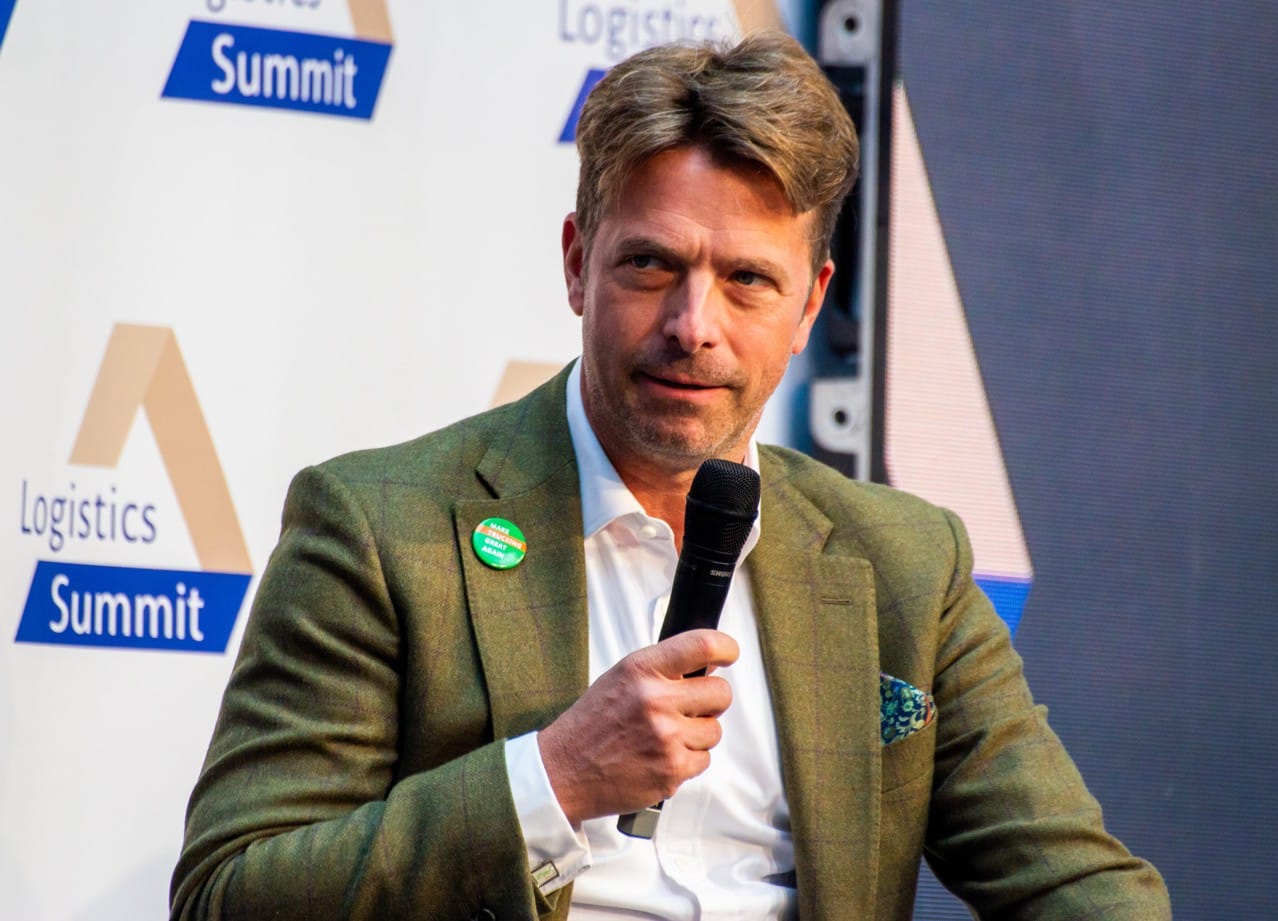 Photo: © JITpay / Image caption: Dr. Daniel Steinke, Managing Director of JITpay during the panel “Road Freight Innovation” at the Logistics Summit in Berlin