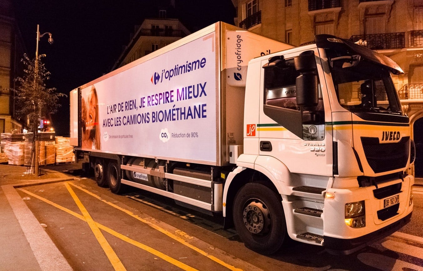 One of the biogas trucks delivering to a Carrefour store in France. © Jacky Perrenot
