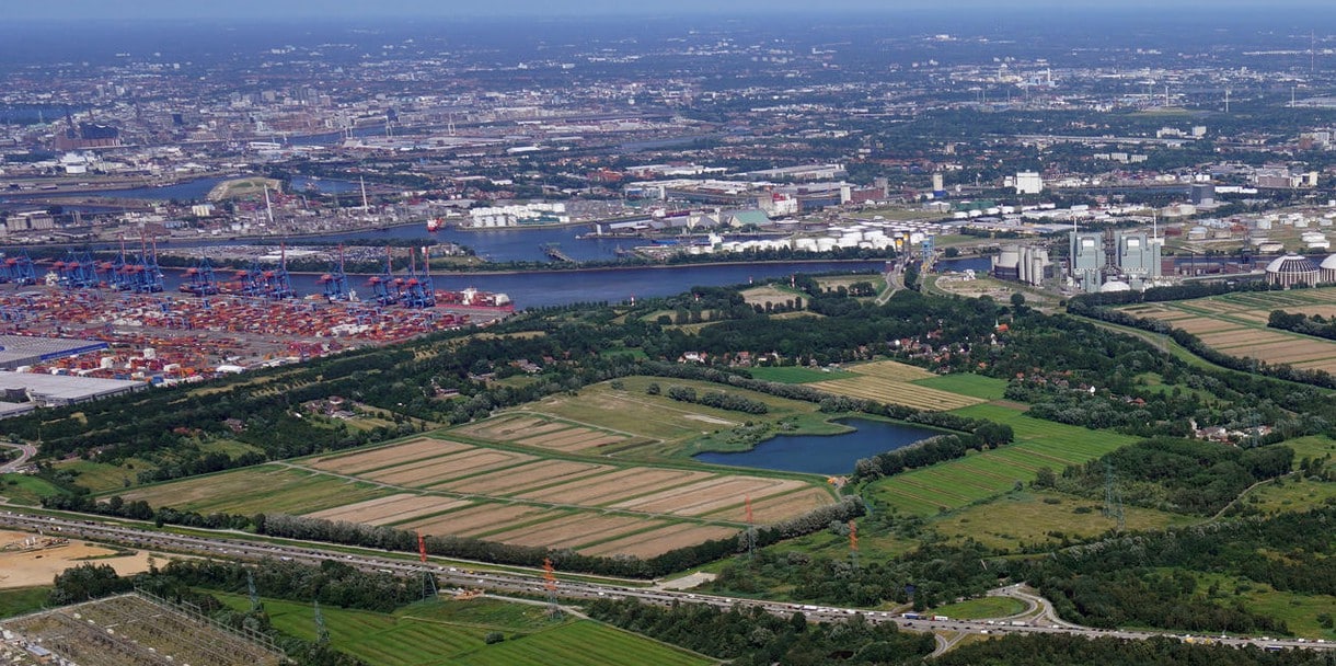 The plans of the Hamburg Chamber of Commerce aim to make Moorburg a center for research and development, renewable energies, green hydrogen, alternative fuels, and fuel cell technology. With a Hy-Tech Park, an E-Fuel Hub, and a fuel cell plant, approximately 153.6 hectares are to be newly utilized, creating around 6,400 new jobs. At the same time, this concept offers the village of Moorburg a new perspective as a district with a better quality of life for its residents.