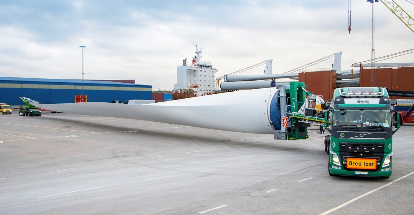 The new Goldhofer solutions for transporting parts for wind energy plants have already proven themselves in a transport project that Schwandner is carrying out for Vestas Wind Energy. The Danish market leader is building the onshore wind farm Riskebo (39 MW capacity) in Sweden on behalf of Stena Renewable AB (Stockholm), where seven EnVentus turbines V162 with 5.6 MW power each will be erected. With a length of around 80 m per blade, this is the maximum rotor size in the Vestas portfolio. It is designed for locations with low to medium wind availability. However, the system can also be used at high wind speeds. The commissioning of the wind farm is expected to take place later this year.