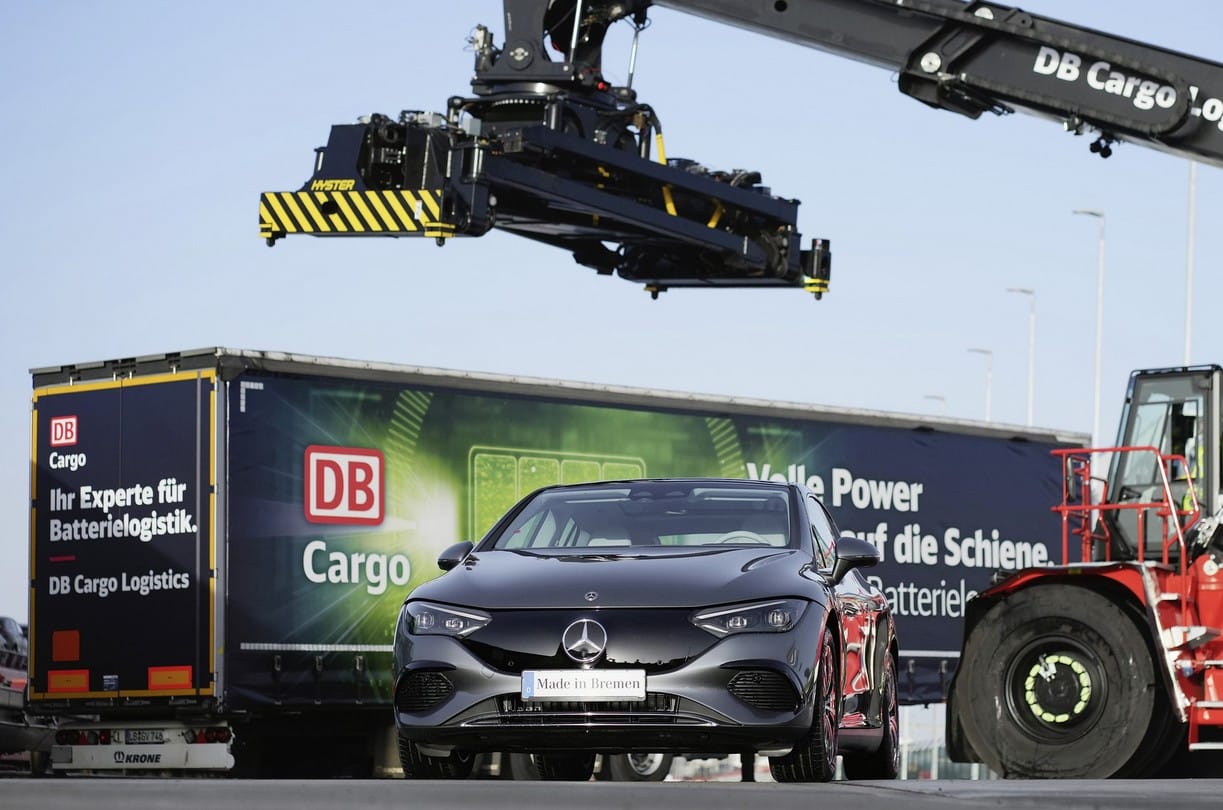 (Mainz/Bremen) Climate-neutral transport solutions for the production of Mercedes-Benz electric vehicles: Jörg Burzer, Member of the Board of Mercedes-Benz Group AG for Production and Supply Chain Management, and Sigrid Nikutta, Executive Board Member for Freight Transport at Deutsche Bahn AG, today officially opened the state-of-the-art Automotive Logistics Center located near the Mercedes-Benz plant in Bremen. The center for battery logistics is the hub of the climate-neutral logistics concept for the battery systems of the new Mercedes-EQ model EQE. Starting this year, DB Cargo will transport the systems CO2-neutrally from the Mercedes-Benz plant in Hedelfingen, Stuttgart, over approximately 650 km to Bremen, delivering them just-in-time and also CO2-neutrally to the assembly line of the Bremen Mercedes-Benz plant. The logistics center allows DB Cargo to maneuver trains in close proximity to the production halls and unload there. The lithium-ion batteries will be temporarily stored in a trailer yard and a battery hall and prepared for delivery to the assembly line. The handling will be carried out with electric tractors.