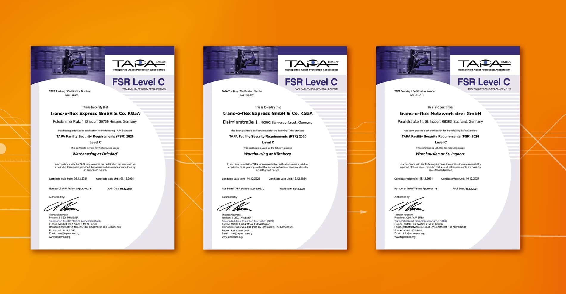 More trans-o-flex Locations Receive TAPA Certification