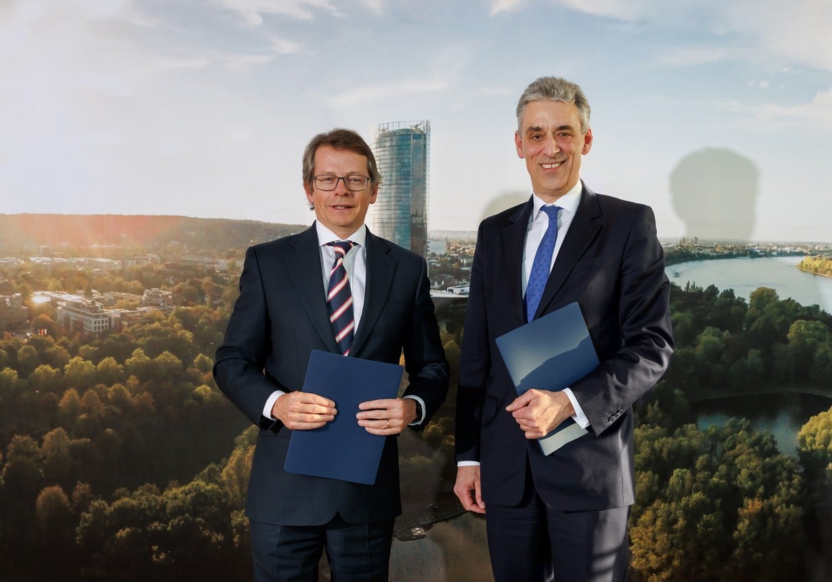 Photo: © DHL Express / Photo caption: Martin Thomsen (left) SVP Air bp and Frank Appel, CEO Deutsche Post DHL Group at the signing of the contract