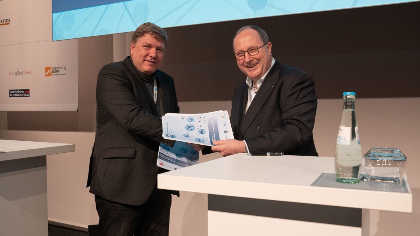 Photo: © EHI / Caption: Signing of the contract for the joint realization of the Digital Delivery Note. Thomas Fell (left), Managing Director GS1 Germany and Prof. Dr.-Ing. Thomas Wimmer (right), Chairman of the Board BVL