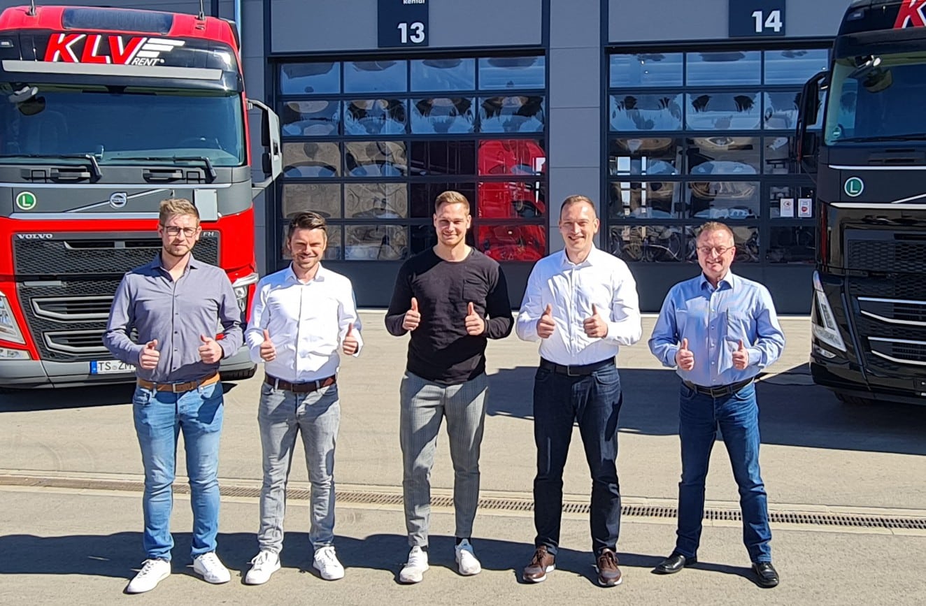 Photo: © UTA / Image caption: Thumbs up for the collaboration: (l. to r.) Florian Hingerl, Fleet Manager Eberl Logistics; Thomas Kirsch, Sales Manager KLVrent; Sebastian Huber, Fleet Manager KLVrent; Lothar Fichte, Channel Partner Manager at UTA Edenred; Markus Eskofier Sales Manager CRT Germany at UTA Edenred