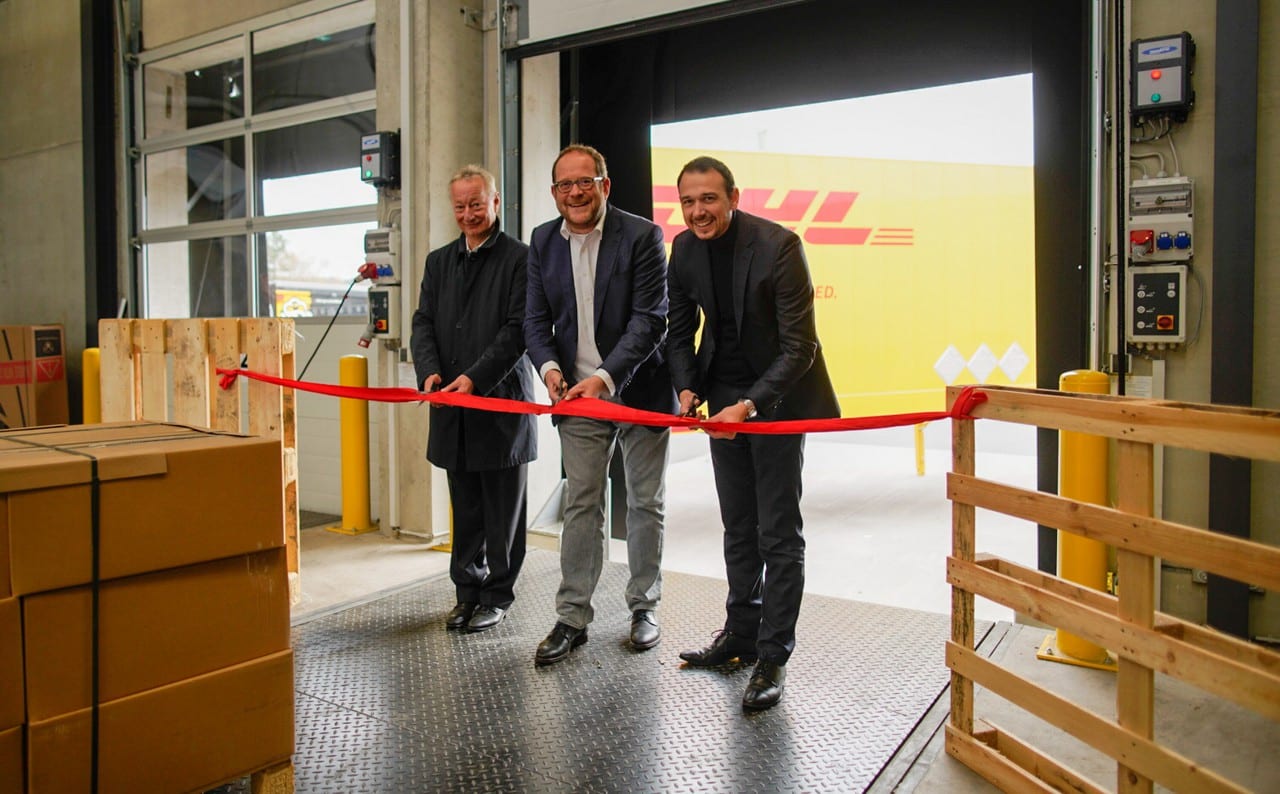 Photo: © DHL / Image caption (l. to r.): Dr. Thomas Hilzinger, Branch Manager Schwarzwald, DHL Freight; Thomas Vogel, CEO DHL Freight DACH; Moritz Nägele, Area Manager South-West, DHL Freight