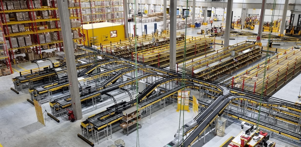 Among other things, a shuttle corridor with 27 levels was installed. In an initial phase, 17 of these were put into operation with around 6,500 storage containers. The individual shuttles are equipped with Inther’s own DTS software to ensure even better coupling and integration with all other hardware components. Furthermore, the Inther Group installed 635 meters of conveyor technology. This serves, among other things, four goods-to-person workstations with light displays for up to eight compartments per container and pick-to-light solutions. An Inther ADI (Automated Document Inserter) ensures the inclusion of the correct documents per shipment. Box erectors and closers, three print & apply machines, and an integrated scale complete the overall system for DHL – which is entirely painted in DHL’s corporate colors.