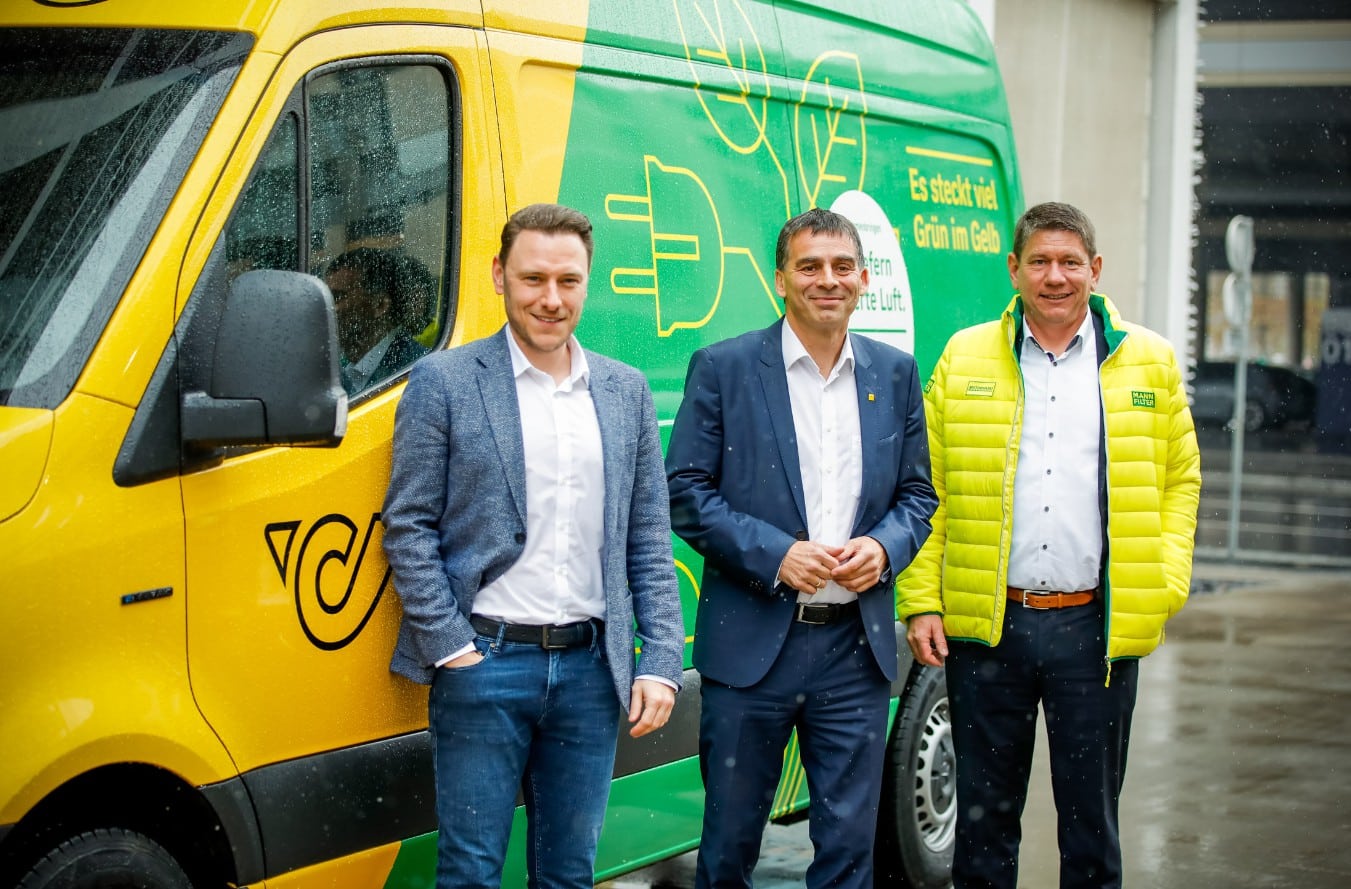 (l. to r.): Marcel Minter, Senior Manager Product & Business Strategy, Mercedes-Benz Vans, Mercedes-Benz AG, Peter Umundum, Managing Director for Parcel & Logistics, Austrian Post AG, Markus Kolczyk, Vice President Global Engineering Original Equipment, MANN+HUMMEL GmbH (© Austrian Post AG)