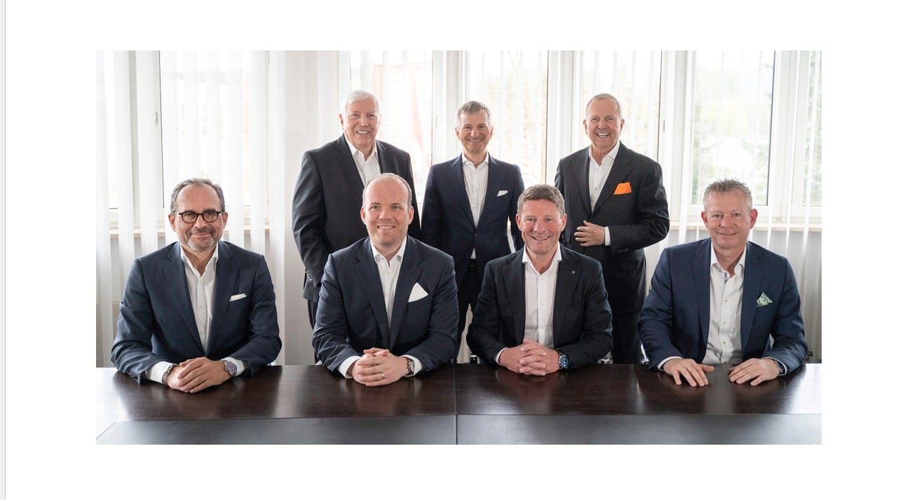 Photo: © Geis / Image Caption: (l. to r.) Rodolphe Schoettel (CFO Quehenberger), Wolfgang Geis and Jochen Geis (managing partners Geis), Klaus Hrazdira (COO Quehenberger), Christian Fürstaller (CEO Quehenberger), as well as Hans-Georg Geis and Hans-Wolfgang Geis (managing partners Geis)