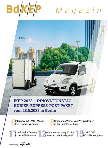 Jun 16, 2023 at 2:52 PMNow it is here, the first issue of the new BdKEP magazine is now available for download. The new online magazine of the Federal Association of Courier, Express, and Postal Services e.V. (BdKEP) addresses the upcoming events, the iKEP23 Innovation Day and the LAST MILE CITY LOGISTICS (LMCL), both taking place simultaneously in Berlin, as well as the SMART CITY LOGISTICS Congress in Jena. At these events, the BdKEP magazine will also be distributed in a limited print edition. Additionally, the topics of phasing out combustion engines for delivery vans, the impending subcontractor ban, and mandatory time recording will be highlighted. Loginfo24 has published the new magazine.