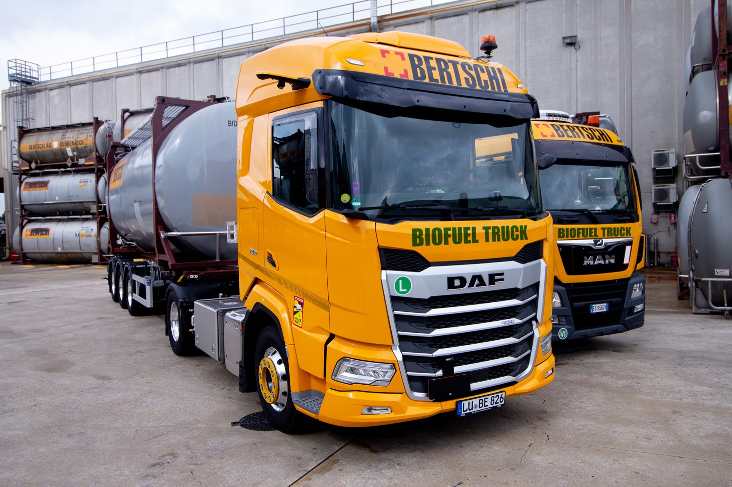 (Dürrenäsch/Horgen) Bertschi, the market leader in intermodal chemical logistics in Europe, continuously works on strategies to improve the sustainability of its door-to-door transport solutions. Today, Bertschi handles 90% of all European land transport via intermodal rail, thereby reducing CO2 emissions by 230,000 tons per year. The focus of these efforts is on optimizing the first and last mile of the supply chain, which is managed on the road. Hydrated vegetable oil (HVO) proves to be a valuable substitute for conventional diesel.