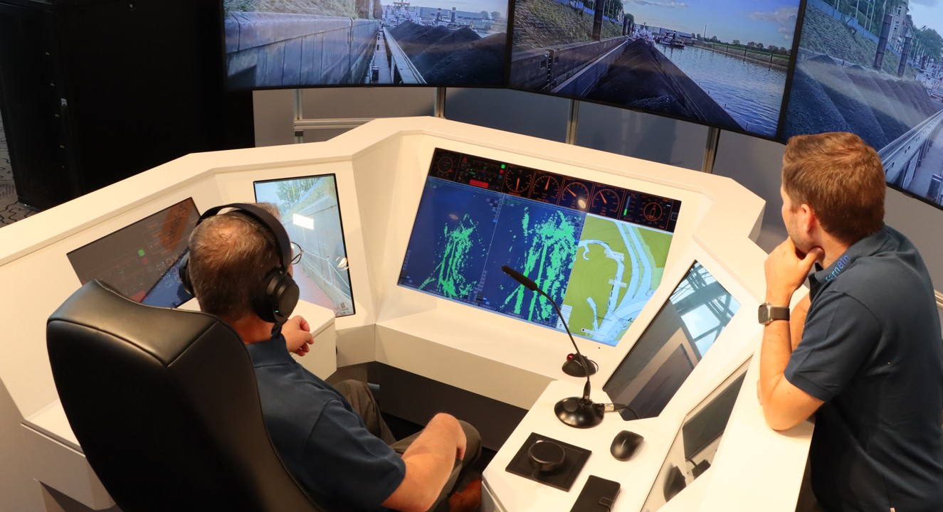 At the FernBin booth in the conference center, the audience could witness the possibilities of remote-controlled inland shipping: From the control station at the Bremen fair, ship captains Bernhard Büche and Herbert Berger navigated the inland vessel Ernst Kramer via remote control. Through a live connection, visitors could follow on both days of the fair how the ship navigated the Duisburg port and the mouth of the Ruhr – all remotely controlled. To ensure that the ship captain has a clear view of the situation on-site, he can access all navigation data from the sensor systems and cameras via mobile communication from the control station. “From a distance, all functions necessary for navigation must be controllable. So far, these include the speed of the main engine, the transmission including clutch, the rudder position, as well as the transmission and adjustment of the radar image and the radar pilot,” explains Lars Reckers, Technical Inspector at Rhenus Ship Management. During the test runs, project participants identify which transmitted functions need refinement or expansion depending on the scenario. “We also need to look at which areas allow remote control during navigation and where mobile reception poses problems,” says Lars Reckers. Therefore, an important step in the project is obtaining official approval for comprehensive test runs.