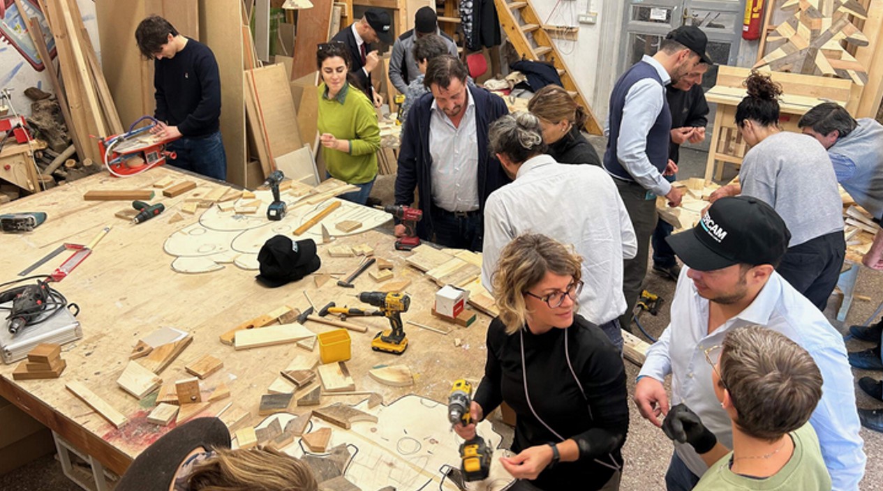 Why does logistics generate so much packaging waste? Is there no better use for discarded single-use wooden pallets or transport boxes than waste? These questions led to the founding of the non-profit organization at the end of 2021. Specifically, the FERCAM branch in Rome, led by Regional Manager Dino Menichetti, processed around 1,200 old pallets at that time to build a break and lounge area for drivers. This created a prime example of upcycling in logistics, meaning the lifecycle of a discarded item is significantly extended in the spirit of the circular economy.