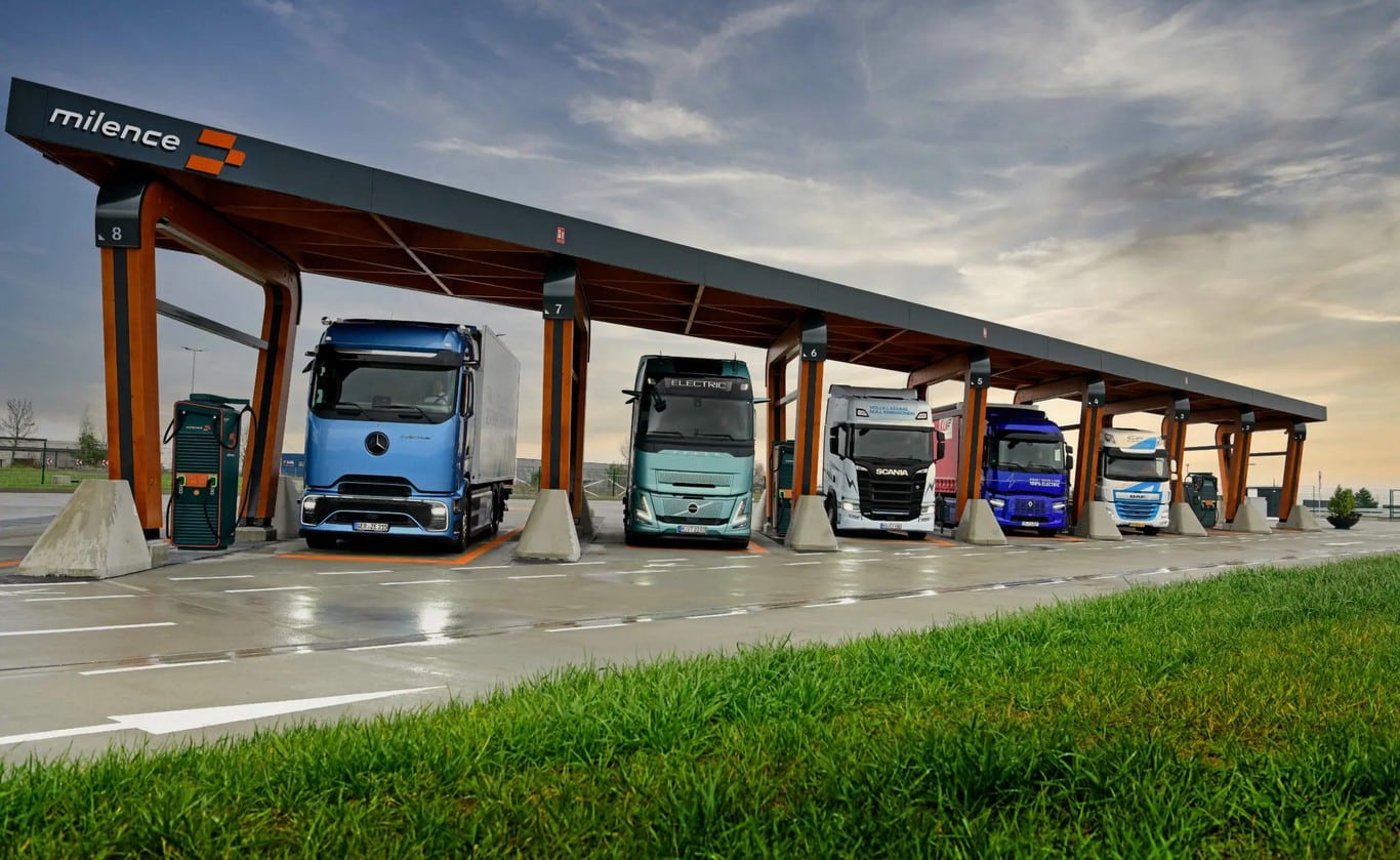 Milence in Vockerode, Saxony-Anhalt: With over 30% of European road freight passing through its borders, Germany is a cornerstone of the Milence strategy. Additional hubs will soon join these in Kassel Lohfelden, Koblenz, Himmelkron, Hüttenberg, Kirchberg an der Jagst, and Recklinghausen, along with more centers in 10 markets to meet the growing demand for electric road freight infrastructure.