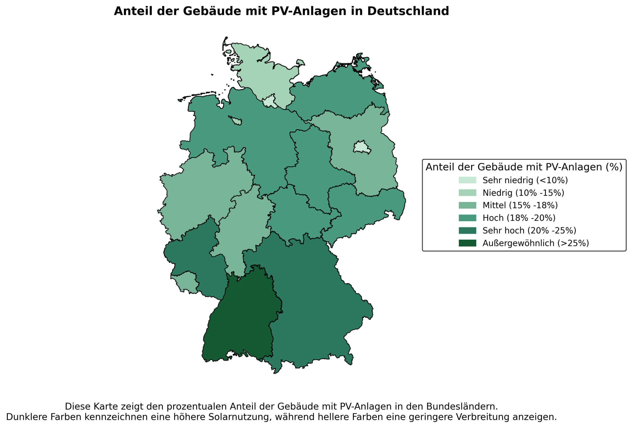 As expected, there is significantly more photovoltaic on commercial roofs in southern and western Germany than in the north and east of the country. The most solar systems on the roofs of commercial halls can be found in Baden-Württemberg, with a share of over 26 percent, closely followed by Bavaria with almost 24 percent. The last places are occupied by the city-states of Hamburg with just over five percent PV coverage and Berlin with just over eight percent. This is also due to natural location factors, as the sun shines more in the south than in the windy north, but when broken down to the level of cities and districts, it becomes clear that local and infrastructural conditions also play a role. For example, the Bavarian district of Straubing-Bogen has the highest PV coverage on commercial hall roofs in Germany at around 50 percent, closely followed by the district of Landau in Rhineland-Palatinate with almost 48 percent. The frontrunner Baden-Württemberg ranks third in the district ranking with just under 43 percent in Biberach, while the fewest PV installations, with only around three percent, can be found in the district of Görlitz in Saxony.