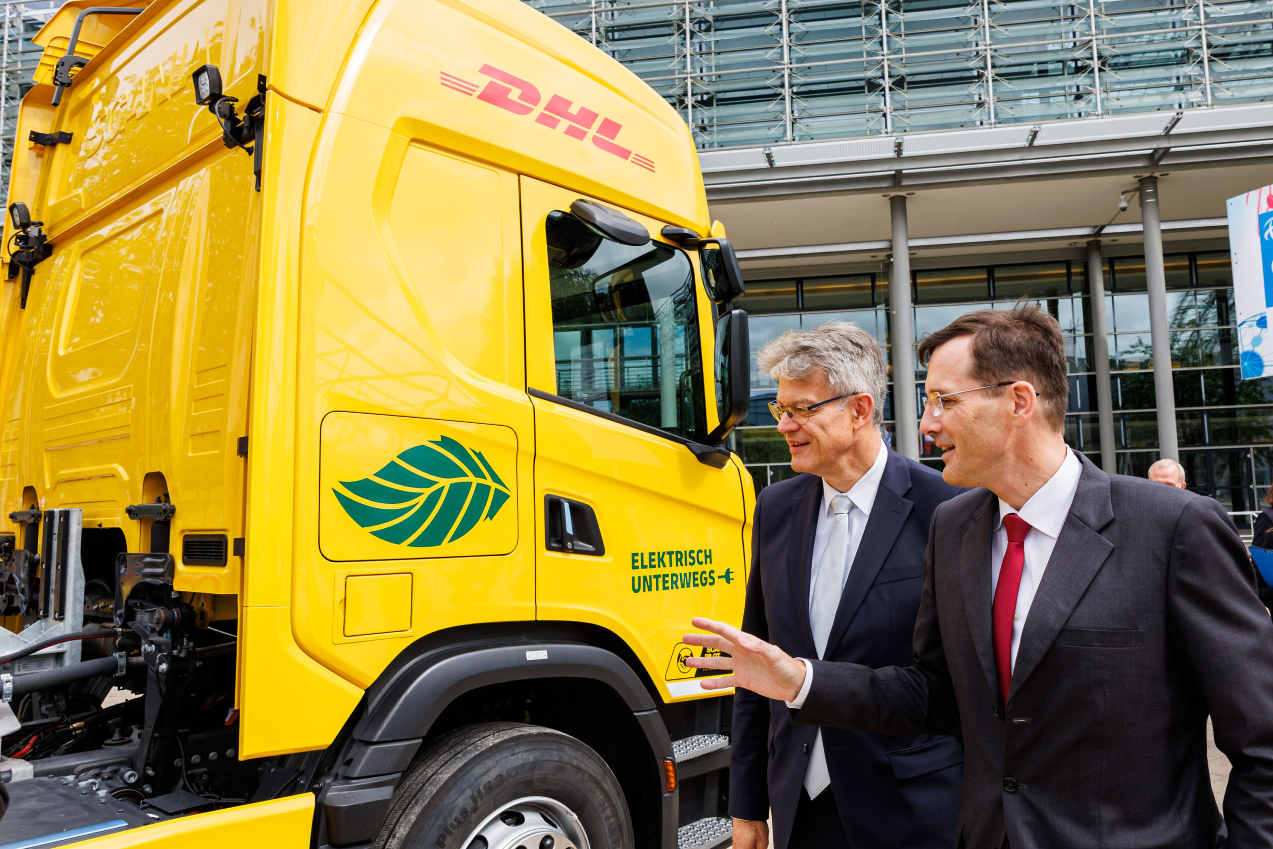 May 23, 2025 at 6:56 PMDHL Group today presented the “Extended Range Electric Vehicle” (EREV), developed in collaboration with commercial vehicle manufacturer Scania, at the International Transport Forum of the OECD in Leipzig. The EREV is an electric truck equipped with a fuel-powered backup generator that generates electricity to recharge the batteries when they are running low.