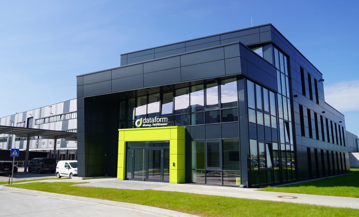 dataform has a modern logistical infrastructure with around 45,000 square meters of storage and production space, automated intralogistics with 18 picking stations, approximately 30,000 pallet spaces, and 90,000 shelf storage spaces. The company offers services along the entire e-commerce value chain: from goods receipt to order processing, packaging, shipping management, and returns processing. The fulfillment offering is complemented by a wide portfolio of dialog-oriented services, such as personalized mailings, digital printing, catalog production, postage management, and hybrid shipping solutions. For business customers, dataform also handles the entire output management of invoices, order confirmations, other business documents, and customer care services.