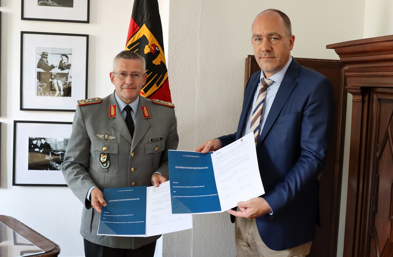 Jul 17, 2025 at 4:26 PMThe President of the Federal Office for Logistics and Mobility (BALM), Christian Hoffmann, and the Deputy Commander of the Operational Command of the Bundeswehr and Commander of Territorial Tasks, Lieutenant General André Bodemann, signed a cooperation agreement on July 14, 2025, to strengthen Germany’s defense capabilities.