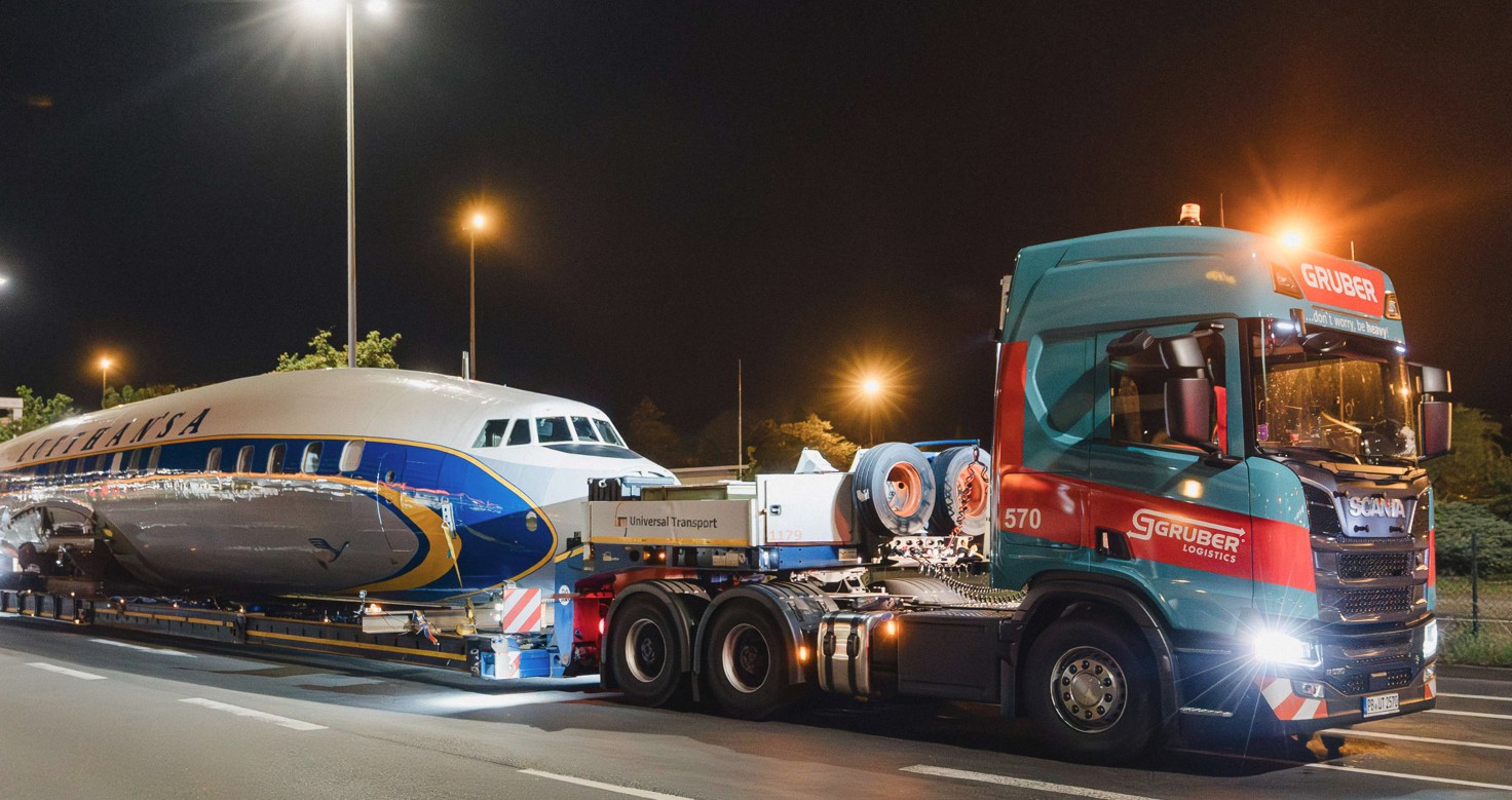 (Auer/Frankfurt) The aircraft, part of the Lockheed Constellation family, was a marvel of engineering in the 1950s. In two precisely planned transports, the experienced heavy load logistics provider was responsible for the transport of the fuselage, tail unit, and the two wings, first from Hamburg Airport to Münster/Osnabrück Airport in July, and from there to Hesse in August. Using 3D computer models, Gruber Logistics calculated the routes and successfully brought the 35-meter-long museum piece, with a wingspan of 45 meters, to its future exhibition location.