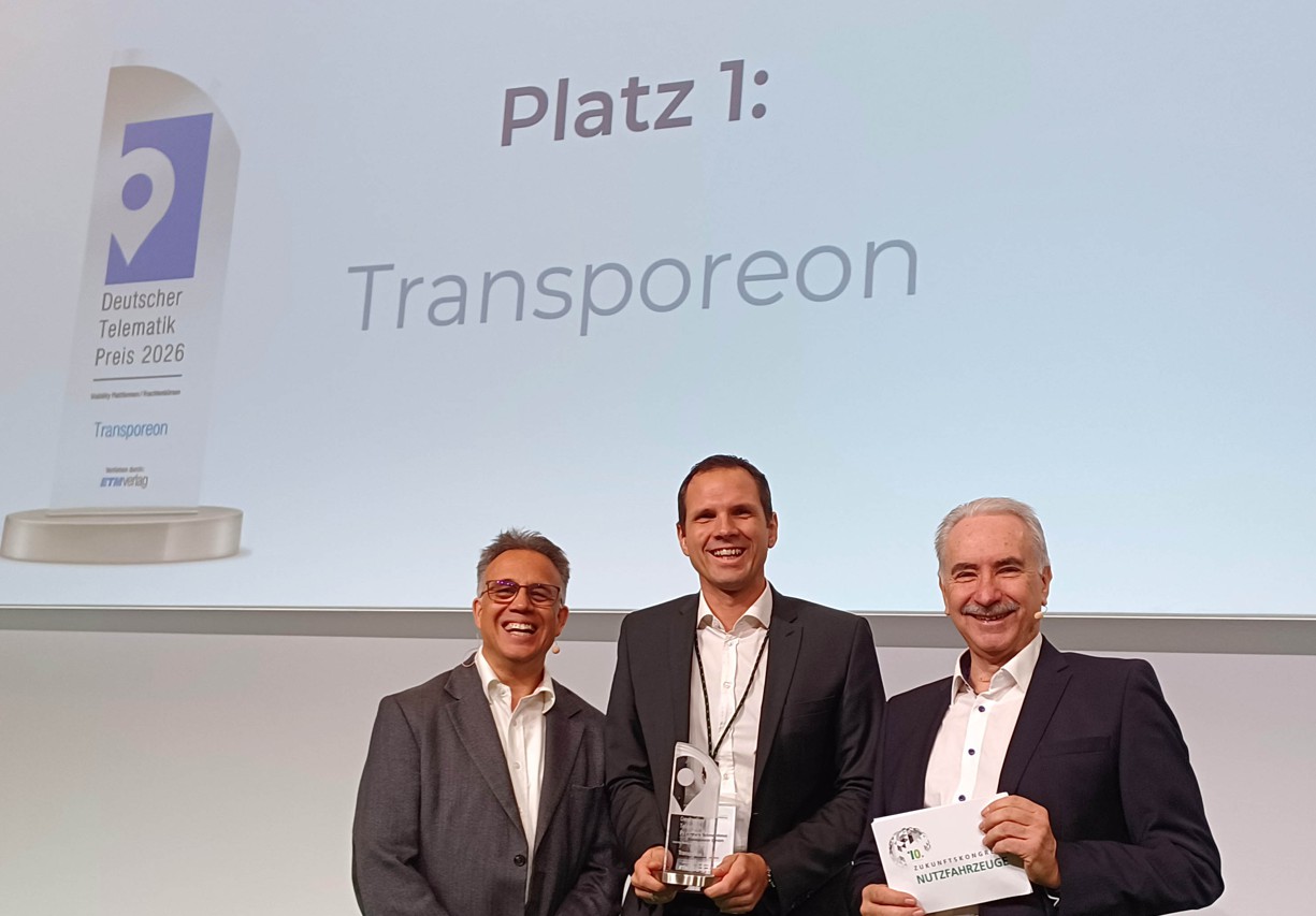 Oct 30, 2025 at 7:53 PMThe transport platform Transporeon secured 1st place (Gold) at the German Telematics Award 2026 in the category “Visibility Platforms / Freight Exchanges.” The award was presented at the Dekra Future Congress for Commercial Vehicles. The prize is awarded every two years. The jury was particularly impressed that the Transporeon solution could cover the most use cases while being very user-friendly.