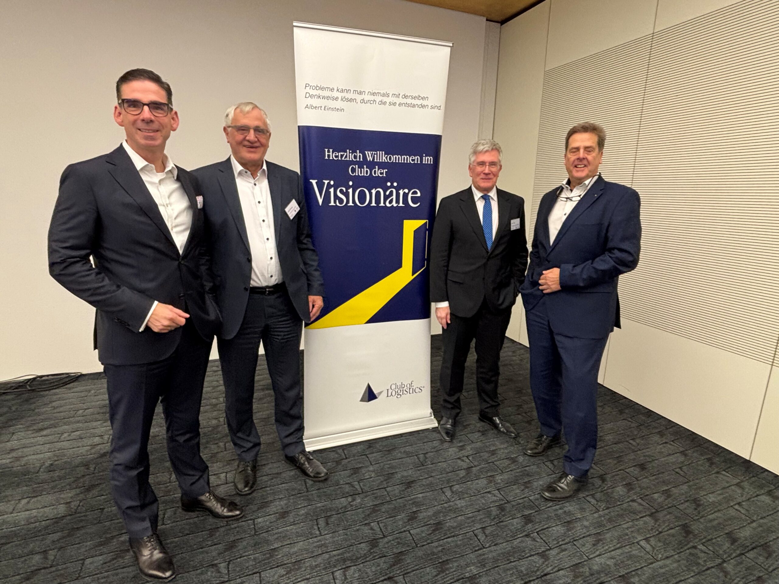 Board and first honorary member of the Club of Logistics (l.r.n.): Matthias Magnor (deputy chairman), Arnold Schroven (chairman), Peter Voß (managing director), and Prof. Dr.-Ing. Volker Stich (honorary member)