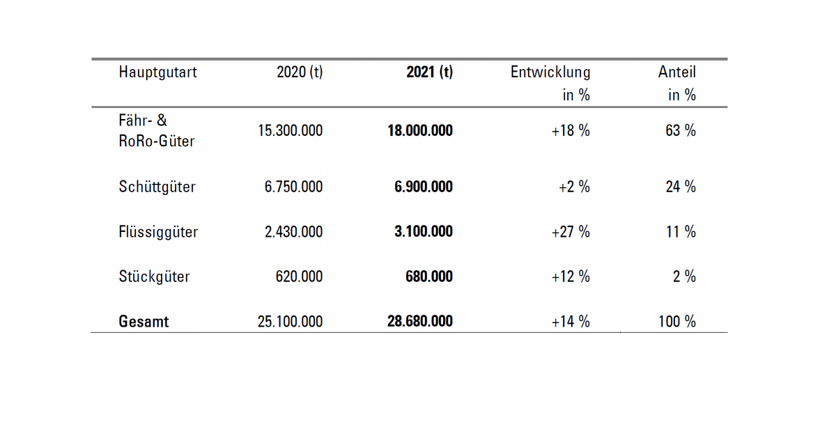 17.01.2022 um 18:07 UhrIm Jahr 2021 gingen insgesamt 30,48 Millionen Tonnen Fracht über die Kaikanten, so viel wie nie zuvor in der Geschichte der Rostocker Häfen. Der Löwenanteil wurde mit 28,68 Millionen Tonnen im Überseehafen Rostock umgeschlagen, wo ein Zuwachs von 14 Prozent bzw. 3,58 Millionen Tonnen im Vergleich zum Jahr 2020 und damit ebenfalls ein neuer Rekord verzeichnet werden konnte.