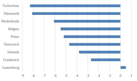 Seit dem Berichtsmonat April 2022 sind auch Lkw-Maut-Indizes für grenzüberschreitende Fahrten verfügbar. Diese messen die Zahl der Ein- und Ausfahrten über die deutsche Grenze. Im Dezember 2022 sank der grenzüberschreitende Verkehr insgesamt kalender- und saisonbereinigt im Vergleich zum November 2022 um 4,8 %. Bei den grenzüberschreitenden Fahrten von und nach Tschechien gab es den stärksten Rückgang (-8,3 %). Auch der grenzüberschreitende Lkw-Verkehr aus und nach Dänemark (-8,1 %) hat gegenüber dem Vormonat vergleichsweise stark abgenommen.