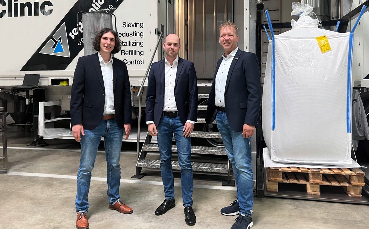 Foto: © SEPARATION / Bildlegende (v.l.n.r.): Mario Bortolussi, Vertrieb der SEPARATION AG, Markus Piepenbrink, Sales Manager bei der OCS GmbH, und Jürgen Greiwing, delegierter Verwalter, freuen sich über die gelungene Kooperation und die Qualitätssteigerung durch den Pellet-Scanner der OCS GmbH