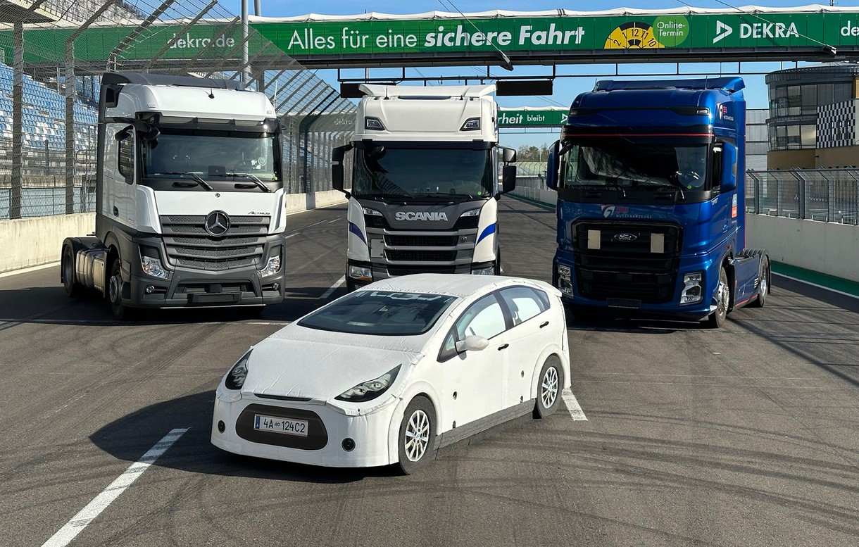 (Stuttgart/Lausitzring) Auf dem Gelände des DEKRA Technology Centers am Lausitzring in Brandenburg wurden Fahrversuche mit drei Lkw verschiedener Hersteller durchgeführt. „Dabei zeigte sich, dass die getesteten Notbremsassistenten zwar gesetzeskonform sind, dass es jedoch noch erhebliches Optimierungspotenzial insbesondere bei der Systemauslegung gibt“, bilanziert Uwe Burckhardt, Leiter Test und Event am DEKRA Lausitzring.