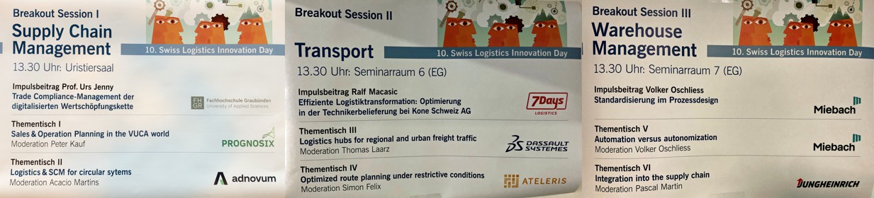 In den drei Work-Shops mit den Themen «Supply Chain Management», «Transport» und «Warehouse Management» erarbeiteten am Schluss sechs Gruppen diverse Themen, die sie zum Schluss des intensiven und spannenden Tages den übrigen Teilnehmer präsentierten.