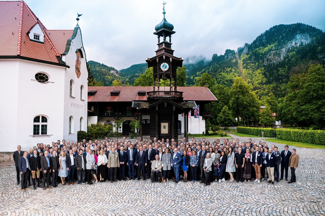 Den krönenden Abschluss des ersten Veranstaltungstages bildete der Empfang des bayerischen Staatsministers für Wohnen, Bau und Verkehr, Christian Bernreiter anlässlich des Symposiums LOGISTIK INNOVATIV in der Festhalle Hohenaschau zu Füßen des beeindruckenden Schlosses Hohenaschau. Trotz einiger konträrer Diskussionspunkte war der persönliche Austausch von Staatsminister Christian Bernreiter, Landesrat René Zumtobel, Landesrat Daniel Alfreider, den beiden Verbandsvertreterinnen Sabine Lehmann vom LBS und Christine Völzow von der vbw unter Moderation von LKZ-Geschäftsführerin Dr. Petra Seebauer von Offenheit und gegenseitigem Engagement geprägt, weiterhin wichtige Weichen stellen und gemeinsam Grenzen abbauen zu wollen, um die Situation im alpenquerenden Verkehr nachhaltig zu verbessern.
