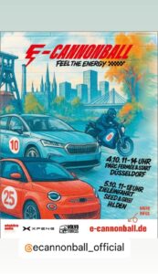 Der E-Cannonball ist die größte Elektro-Rallye Deutschlands und hat es sich zur Aufgabe gemacht, das Bewusstsein für die Effizienz und das Potenzial von Elektrofahrzeugen zu steigern. Die Veranstaltung wurde 2018 u.a. von Elektromobilitäts-Pionier Ove Kröger ins Leben gerufen. Das Event vereint jedes Jahr eine breite Palette von Teams, die sich in strategischer Planung, Energieeffizienz und kreativen Herausforderungen messen.