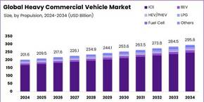 According to a recent analysis by 'Market.us Scoop', the global heavy commercial vehicle (HCV) market is projected to reach USD 295.6 billion by 2034, up from USD 201.6 billion in 2024, representing a compound annual growth rate of 3.9%. The study highlights rising demand for efficient freight and logistics solutions driven by urbanisation and infrastructure expansion.
