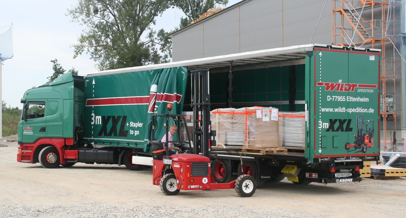 Avec l’intégration du nouveau réseau de chariots élévateurs embarqués au système de chargement partiel ELVIS, ces inconvénients disparaissent. Les marchandises pesant jusqu’à deux tonnes et mesurant jusqu’à 6,5 mètres de long peuvent ainsi être transportées et livrées de manière standardisée.