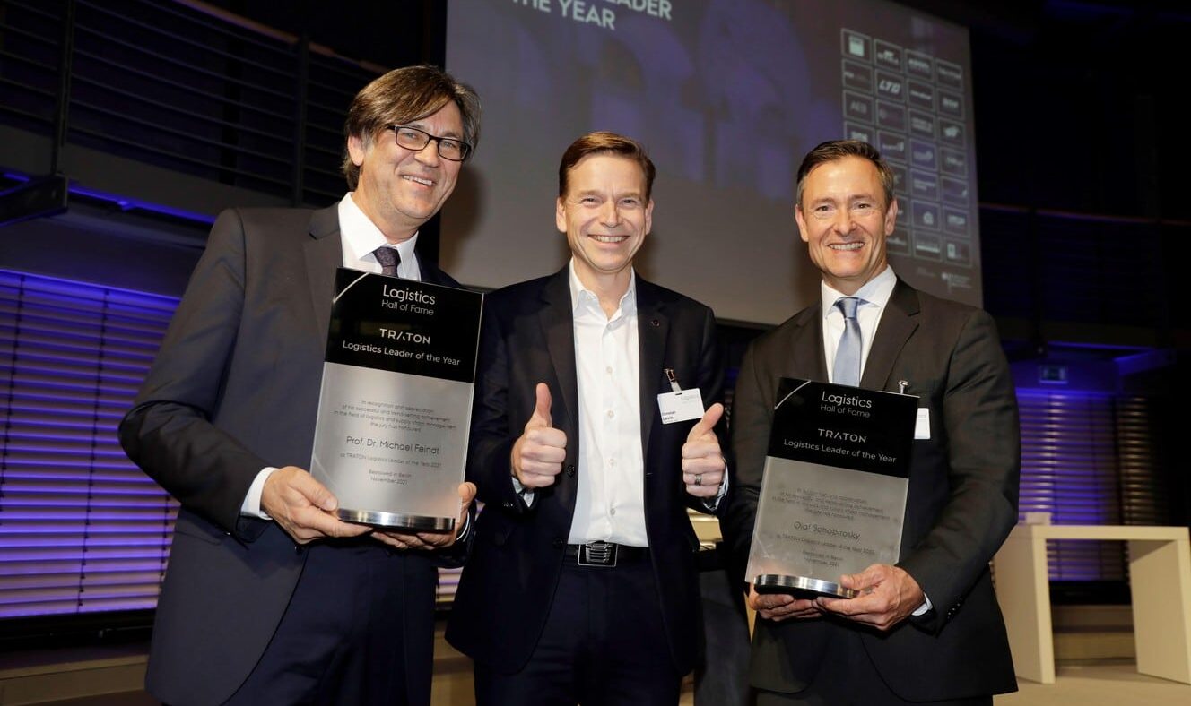 26/11/2021 à 19 h 26Avec Olaf Schabirosky (Hermes) et le Prof. Dr. Michael Feindt (Blue Yonder), deux personnalités importantes du secteur du transport international ont été récompensées en tant que « TRATON Logistics Leader of the Year » pour les années 2020 et 2021. La remise des prix a eu lieu le 25 novembre lors de la réception de gala de la Logistics Hall of Fame à Berlin.
