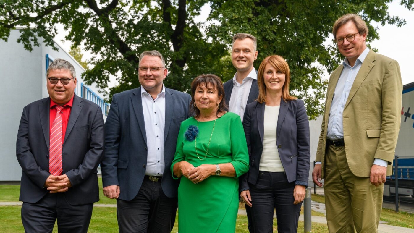 Photo : © WP Holding / Légende de l’image : La direction de la faction CDU du parlement saxon en visite chez WP (de gauche à droite : Dr. Matthias Schmidt, directeur d’Erlos, Christian Hartmann, président de la faction CDU Saxe, Kerstin Nicolaus, MdL, Jan Löffler, MdL, Doreen Paesold-Runge, directrice générale de WP Holding, Georg-Ludwig von Breitenbuch, MdL)