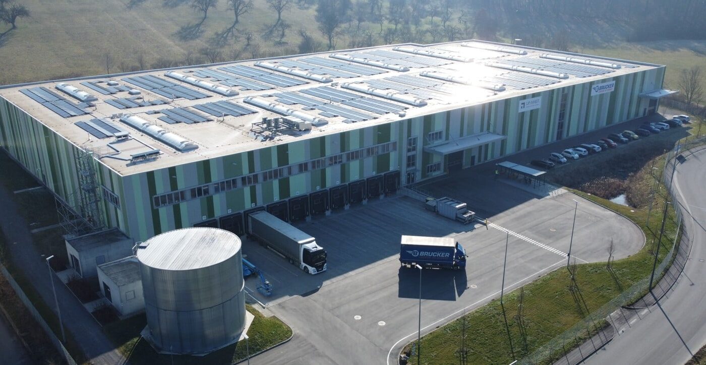 Da quando è stato messo in funzione, l’utente dell’immobile logistico utilizza l’energia solare. La spedizione Brucker gestisce qui un incarico per Bosch. Il fornitore di servizi logistici gestisce, tra l’altro, un impianto di lavaggio automatizzato e veicoli elettrici, che possono essere alimentati direttamente dal tetto grazie a un cosiddetto Power-Purchase-Agreement (PPA).