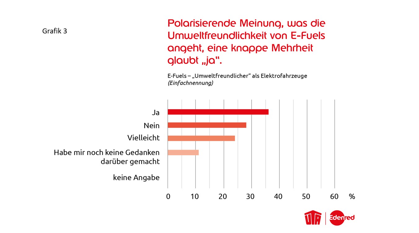 Een andere mogelijkheid om zijn wagenpark in de toekomst emissievrij te maken, is de “groene” waterstof. Dit wordt beschouwd als een schone alternatieve brandstof voor voertuigen met een verbrandingsmotor. Waterstof is vooral interessant in sectoren zoals het langeafstands- en zwaar transport, waar elektrificatie op korte termijn nog niet mogelijk is. En hoewel er momenteel in Europa nog geen uitgebreide infrastructuur aanwezig is, wil bijna één op de drie wagenparkbeheerders (29 procent) in de toekomst waterstof gebruiken voor de werking van hun voertuigen. Ook E-Fuels zijn in de discussie over duurzame mobiliteit in de schijnwerpers komen te staan. Terwijl sommigen ze zien als een milieuvriendelijke alternatieve brandstof voor elektrische voertuigen, zijn anderen van mening dat voertuigen die op E-Fuels rijden theoretisch klimaatneutraal kunnen zijn, maar lokaal toch CO2 en schadelijke stoffen uitstoten. Dezelfde polariserende mening weerspiegelt zich in de enquête. Terwijl meer dan een derde (36 procent) van de ondervraagde wagenparkbeheerders denkt dat E-Fuels milieuvriendelijker zijn dan elektrische voertuigen, denkt meer dan een kwart (28 procent) het tegenovergestelde. Bijna een kwart (24 procent) is daarentegen nog onzeker, terwijl één op de tien (11 procent) nog geen gedachten heeft gehad over E-Fuels. (Grafiek 3).