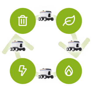 Uma segunda ideia é desenvolver um trem de carga autônomo e flexível. Contêineres autônomos se tornariam comuns nas estradas rurais – movidos a eletricidade, dirigidos de forma autônoma e capazes de se acoplar automaticamente em trens. A aplicação para fluxos locais de mercadorias, materiais e energia é diversificada. Em vez de grandes caminhões de lixo com rotas longas, um enxame de veículos autônomos poderia trocar os contêineres. Um exemplo para a agricultura: veículos autônomos transportam leite fresco diretamente para a laticínio. Também existem cenários de aplicação para a rede de gás e eletricidade, e além disso, a rede está aberta a ideias e abordagens que sirvam a um único objetivo: tornar as regiões rurais economicamente fortes e habitáveis com a ajuda da logística autônoma.