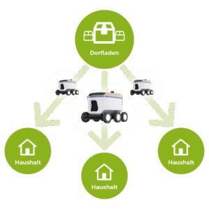 A rede identificou os primeiros casos de uso: a loja local poderia ser revitalizada em uma versão 4.0. “A loja local ainda desempenha sua função como centro social, mas se tornará também um ponto de conexão para logística autônoma”, explica o Prof. Dr. Ludwig. Os serviços de entrega não levarão mais as mercadorias diretamente ao cliente final, mas sim à loja local. Os funcionários entregarão os produtos diretamente ou os enviarão por meio de um sistema de entrega autônomo aos destinatários. O uso de drones também é uma possibilidade, segundo o Prof. Dr. Ludwig. “A implementação de drones no campo é muito mais fácil do que na cidade. Lá, é em grande parte proibido por boas razões.”