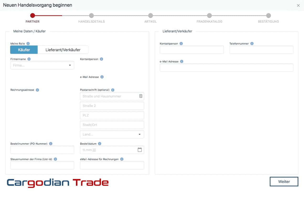 A inovadora plataforma online da Cargodian é uma plataforma B2B única que atua como intermediário independente para compradores e vendedores. Com a ajuda da plataforma, as PMEs podem dispensar medidas dispendiosas e complicadas, como cartas de crédito bancárias. O objetivo principal da plataforma é tornar o comércio B2B global mais acessível para mais PMEs. A Cargodian é totalmente digital e fácil de usar. A solução é transparente, economiza custos e tempo, é flexível e, graças à tecnologia blockchain, extremamente segura. A Cargodian utiliza a tecnologia DLT Hyperledger Fabric para garantir um nível de segurança à prova de manipulação para a troca de dados e documentos comerciais.