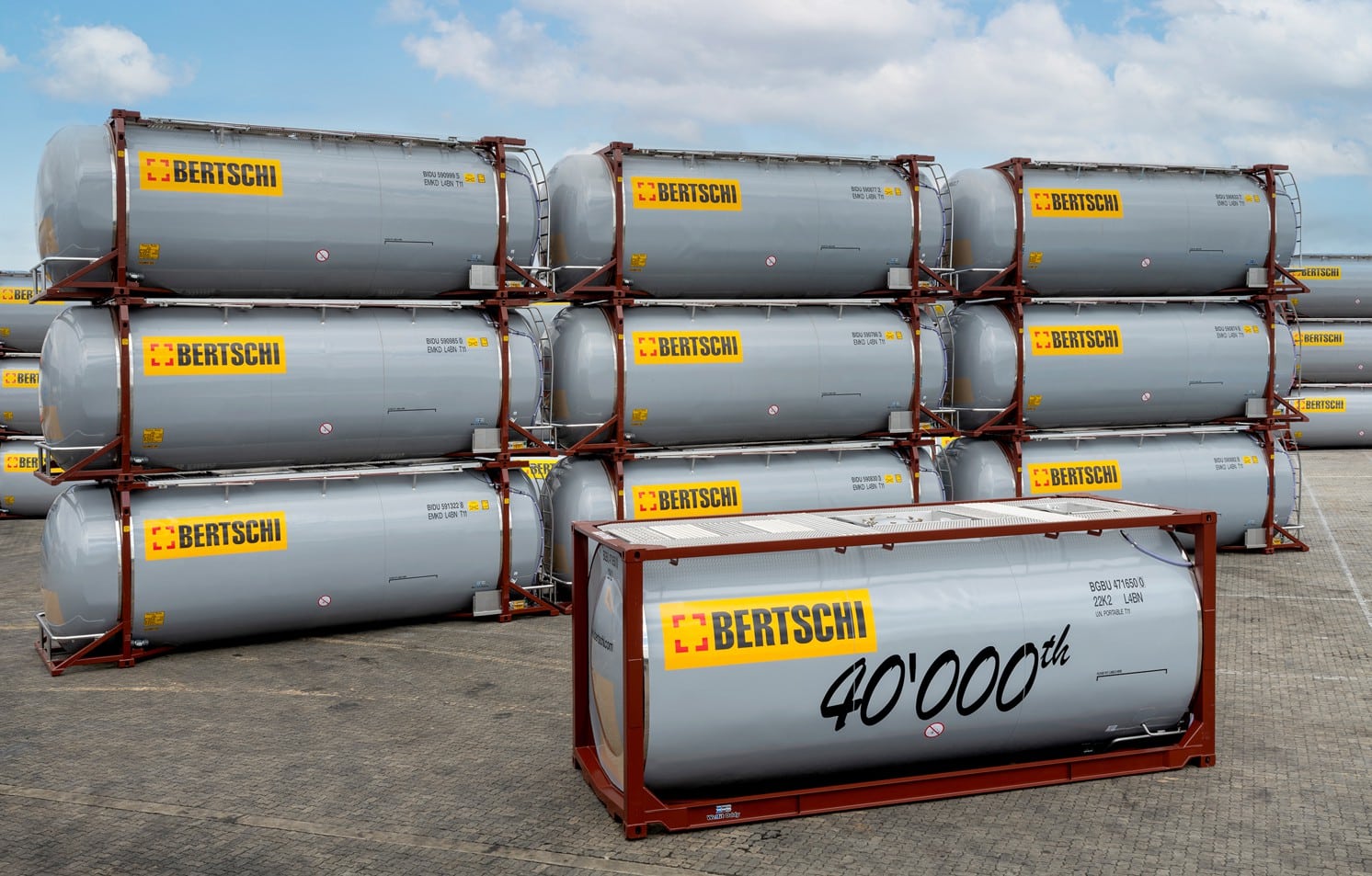Com investimentos de CHF 100 milhões, a Bertschi expandiu sua infraestrutura logística em 2021. Isso inclui a duplicação da capacidade de armazenamento para produtos químicos em contêineres em Roterdã e Middlesbrough (Reino Unido), bem como a construção de um novo hub de logística química na China. Por outro lado, a frota de contêineres-tanque e silos foi ampliada em mais de 2.000 unidades. No início de 2022, a Bertschi pôde colocar em circulação o 40.000º contêiner.