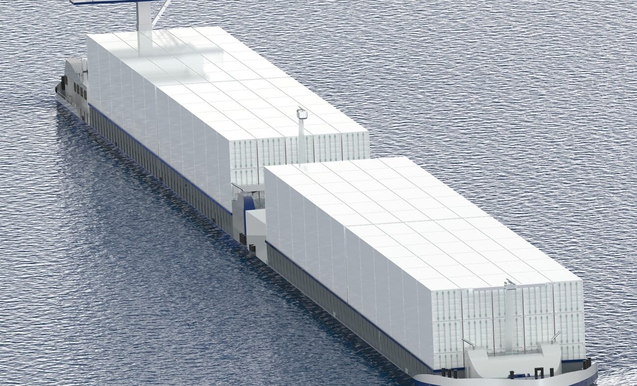 As combinações de navios são compostas por um navio motorizado e até três barcaças de empurrão. As formações de navios são extremamente robustas e permitem um volume de carga flexível. Graças à boa distribuição de peso e a um conceito de propulsão inovador, os navios estão prontos para operar com um calado de apenas 1,20 metros. Assim, as combinações podem navegar sem problemas mesmo em águas rasas, aumentando a otimização da descarga. Com a construção inovadora do navio, a Rhenus reduz significativamente o peso: o peso do casco do navio de carga é reduzido para 510 toneladas, enquanto a barcaça de empurrão pesa 390 toneladas.