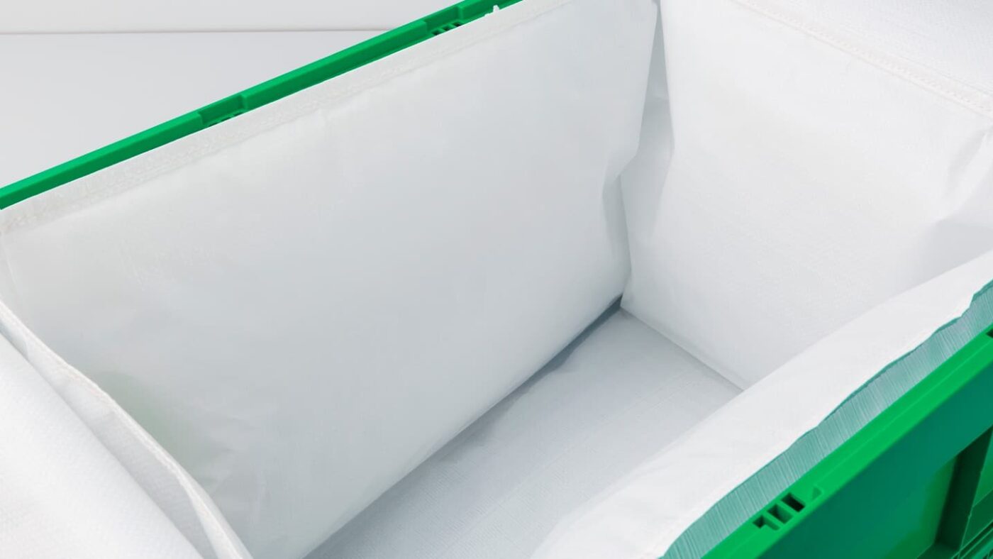 Além dos aspectos da pegada de carbono e da necessidade de economia de energia, esta caixa reutilizável também atende a necessidades especiais de segurança no transporte: dentro da caixa, há uma almofada de ar inflável reversível, que se ajusta ao redor da carga durante a inflação, garantindo assim uma alta proteção durante o transporte. A almofada de ar é feita do mesmo material que a embalagem secundária, de modo que existe um sistema completo feito de um monomaterial puro ideal para reciclagem. Além disso, a almofada de ar pode ser equipada com um equipamento condutivo para atender a requisitos especiais, além da proteção pura durante o transporte. Para reduzir significativamente o volume de transporte e armazenamento quando não preenchido, o sistema de transporte é dobrável após a liberação do ar da almofada. A caixa de transporte e a almofada de ar interna podem ser projetadas para serem fixas ou intercambiáveis. A caixa de transporte também pode ser empilhada de maneira conhecida.